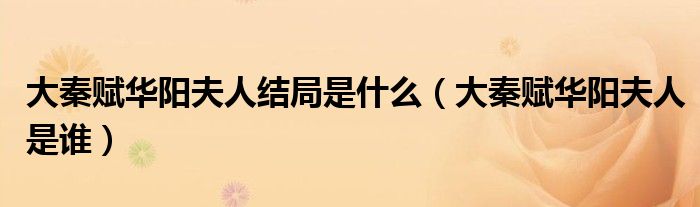 大家好,伊人來(lái)為大家解答以上問(wèn)題。大秦賦華陽(yáng)夫人結(jié)局是什么,大秦賦華陽(yáng)夫人是誰(shuí)很多人還不知道,現(xiàn)在讓我們一起來(lái)看看吧!