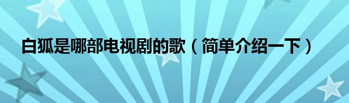 大家好,伊人來為大家解答以上問題。白狐是哪部電視劇的歌,簡單介紹一下很多人還不知道,現在讓我們一起來看看吧!