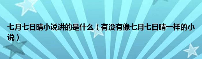 大家好,小育來為大家講解下。七月七日晴小說講的是什么,有沒有像七月七日晴一樣的小說很多人還不知道,現(xiàn)在讓我們一起來看看吧!
