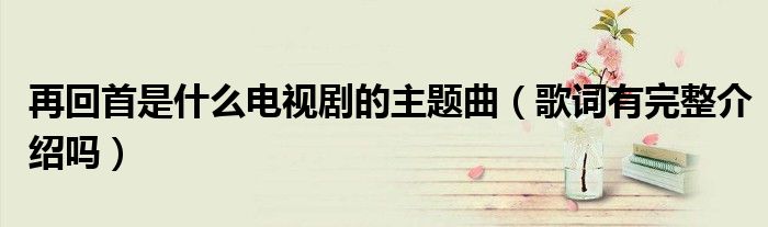 大家好,伊人來為大家解答以上問題。再回首是什么電視劇的主題曲,歌詞有完整介紹嗎很多人還不知道,現(xiàn)在讓我們一起來看看吧!