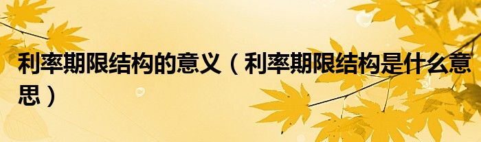 大家好,小育來為大家講解下。利率期限結構的意義,利率期限結構是什么意思很多人還不知道,現(xiàn)在讓我們一起來看看吧!