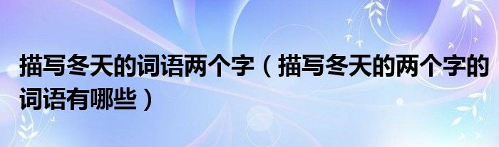 大家好,小育來(lái)為大家講解下。描寫冬天的詞語(yǔ)兩個(gè)字,描寫冬天的兩個(gè)字的詞語(yǔ)有哪些很多人還不知道,現(xiàn)在讓我們一起來(lái)看看吧!