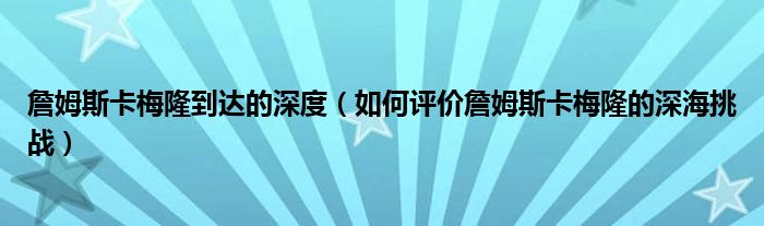 大家好,小育來(lái)為大家講解下。詹姆斯卡梅隆到達(dá)的深度,如何評(píng)價(jià)詹姆斯卡梅隆的深海挑戰(zhàn)很多人還不知道,現(xiàn)在讓我們一起來(lái)看看吧!