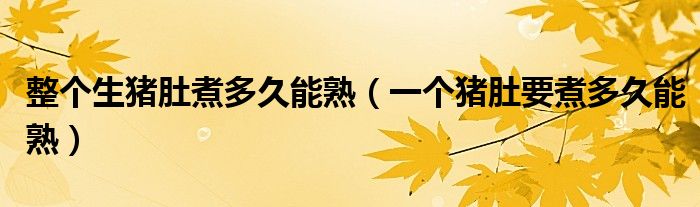 大家好,小育來為大家講解下。整個生豬肚煮多久能熟,一個豬肚要煮多久能熟很多人還不知道,現在讓我們一起來看看吧!