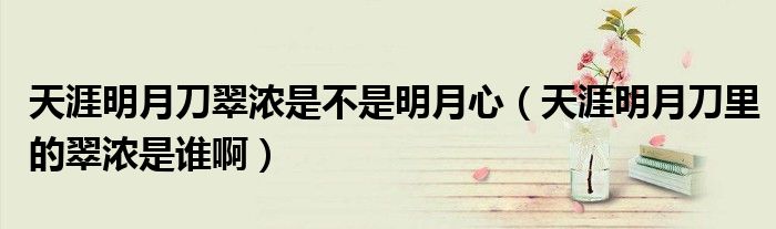 大家好,小育來(lái)為大家講解下。天涯明月刀翠濃是不是明月心,天涯明月刀里的翠濃是誰(shuí)啊很多人還不知道,現(xiàn)在讓我們一起來(lái)看看吧!