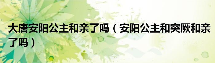 大家好,小育來為大家講解下。大唐安陽公主和親了嗎,安陽公主和突厥和親了嗎很多人還不知道,現(xiàn)在讓我們一起來看看吧!