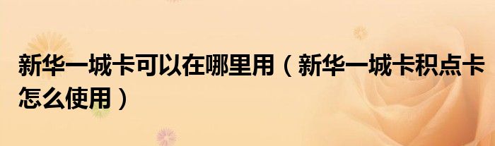 大家好,小育來(lái)為大家講解下。新華一城卡可以在哪里用,新華一城卡積點(diǎn)卡怎么使用很多人還不知道,現(xiàn)在讓我們一起來(lái)看看吧!
