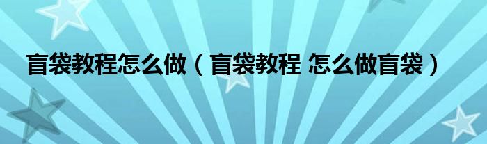 大家好,小育來(lái)為大家講解下。盲袋教程怎么做,盲袋教程 怎么做盲袋很多人還不知道,現(xiàn)在讓我們一起來(lái)看看吧!