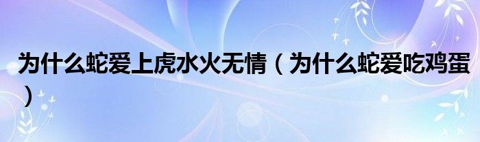 大家好,小育來為大家講解下。為什么蛇愛上虎水火無情,為什么蛇愛吃雞蛋很多人還不知道,現(xiàn)在讓我們一起來看看吧!