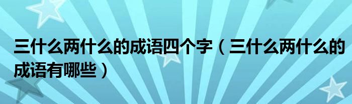大家好,小育來為大家講解下。三什么兩什么的成語四個字,三什么兩什么的成語有哪些很多人還不知道,現(xiàn)在讓我們一起來看看吧!
