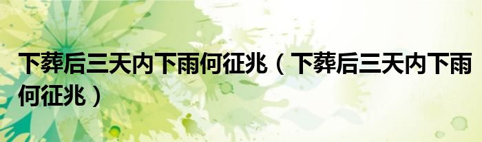 大家好,小育來為大家講解下。下葬后三天內(nèi)下雨何征兆,下葬后三天內(nèi)下雨何征兆很多人還不知道,現(xiàn)在讓我們一起來看看吧!