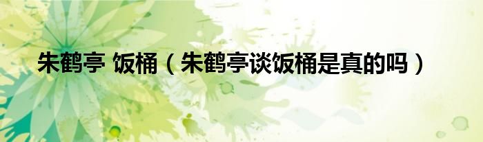 大家好,小育來(lái)為大家講解下。朱鶴亭 飯桶,朱鶴亭談飯桶是真的嗎很多人還不知道,現(xiàn)在讓我們一起來(lái)看看吧!