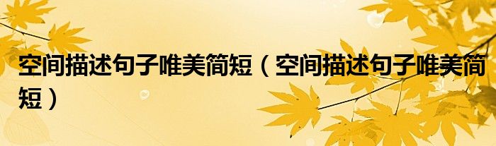 大家好,小育來為大家講解下??臻g描述句子唯美簡短,空間描述句子唯美簡短很多人還不知道,現(xiàn)在讓我們一起來看看吧!