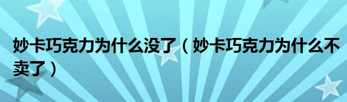 大家好,小育來為大家講解下。妙卡巧克力為什么沒了,妙卡巧克力為什么不賣了很多人還不知道,現(xiàn)在讓我們一起來看看吧!