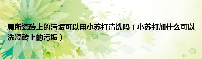 大家好,小育來為大家講解下。廁所瓷磚上的污垢可以用小蘇打清洗嗎,小蘇打加什么可以洗瓷磚上的污垢很多人還不知道,現(xiàn)在讓我們一起來看看吧!