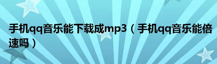 大家好,小育來為大家講解下。手機(jī)qq音樂能下載成mp3,手機(jī)qq音樂能倍速嗎很多人還不知道,現(xiàn)在讓我們一起來看看吧!