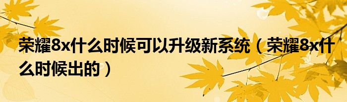 大家好,小育來(lái)為大家講解下。榮耀8x什么時(shí)候可以升級(jí)新系統(tǒng),榮耀8x什么時(shí)候出的很多人還不知道,現(xiàn)在讓我們一起來(lái)看看吧!