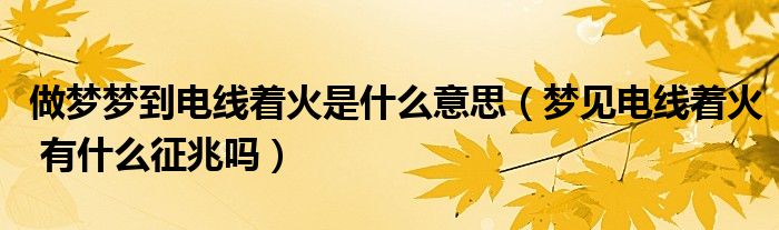 大家好,小育來(lái)為大家講解下。做夢(mèng)夢(mèng)到電線著火是什么意思,夢(mèng)見電線著火 有什么征兆嗎很多人還不知道,現(xiàn)在讓我們一起來(lái)看看吧!