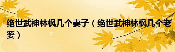 大家好,小育來為大家講解下。絕世武神林楓幾個(gè)妻子,絕世武神林楓幾個(gè)老婆很多人還不知道,現(xiàn)在讓我們一起來看看吧!
