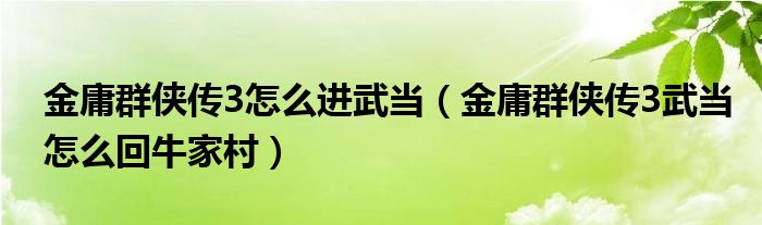 大家好,小育來為大家講解下。金庸群俠傳3怎么進武當(dāng),金庸群俠傳3武當(dāng)怎么回牛家村很多人還不知道,現(xiàn)在讓我們一起來看看吧!