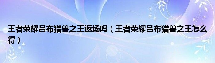 大家好,小育來(lái)為大家講解下。王者榮耀呂布獵獸之王返場(chǎng)嗎,王者榮耀呂布獵獸之王怎么得很多人還不知道,現(xiàn)在讓我們一起來(lái)看看吧!