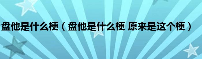 大家好,小育來為大家講解下。盤他是什么梗,盤他是什么梗 原來是這個(gè)梗很多人還不知道,現(xiàn)在讓我們一起來看看吧!