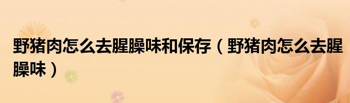 大家好,小育來為大家講解下。野豬肉怎么去腥臊味和保存,野豬肉怎么去腥臊味很多人還不知道,現(xiàn)在讓我們一起來看看吧!