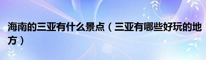大家好,伊人來為大家解答以上問題。海南的三亞有什么景點(diǎn),三亞有哪些好玩的地方很多人還不知道,現(xiàn)在讓我們一起來看看吧!
