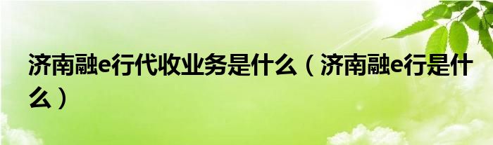 大家好,小育來為大家講解下。濟(jì)南融e行代收業(yè)務(wù)是什么,濟(jì)南融e行是什么很多人還不知道,現(xiàn)在讓我們一起來看看吧!