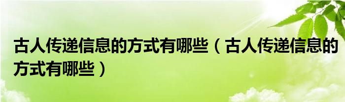 大家好,小育來為大家講解下。古人傳遞信息的方式有哪些,古人傳遞信息的方式有哪些很多人還不知道,現(xiàn)在讓我們一起來看看吧!