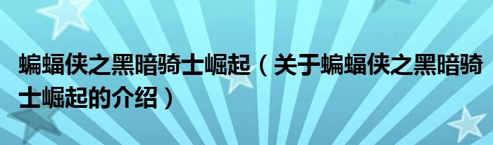 大家好,小新來為大家解答以上的問題。蝙蝠俠之黑暗騎士崛起,關(guān)于蝙蝠俠之黑暗騎士崛起的介紹很多人還不知道,現(xiàn)在讓我們一起來看看吧!