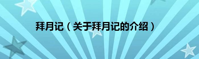 大家好,小新來為大家解答以上的問題。拜月記,關于拜月記的介紹很多人還不知道,現(xiàn)在讓我們一起來看看吧!