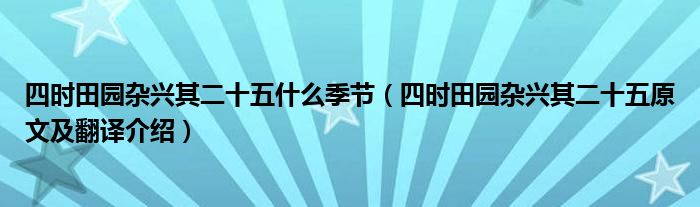 大家好,伊人來為大家解答以上問題。四時(shí)田園雜興其二十五什么季節(jié),四時(shí)田園雜興其二十五原文及翻譯介紹很多人還不知道,現(xiàn)在讓我們一起來看看吧!