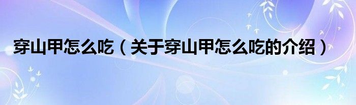 大家好,小新來為大家解答以上的問題。穿山甲怎么吃,關(guān)于穿山甲怎么吃的介紹很多人還不知道,現(xiàn)在讓我們一起來看看吧!