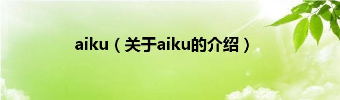 大家好,小新來為大家解答以上的問題。aiku,關于aiku的介紹很多人還不知道,現(xiàn)在讓我們一起來看看吧!