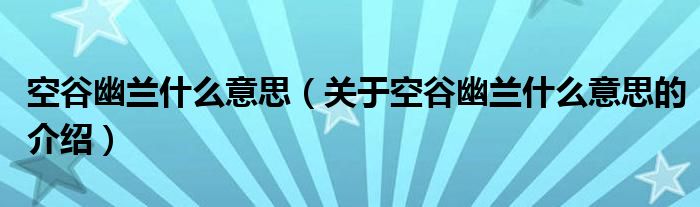大家好,小新來為大家解答以上的問題??展扔奶m什么意思,關(guān)于空谷幽蘭什么意思的介紹很多人還不知道,現(xiàn)在讓我們一起來看看吧!