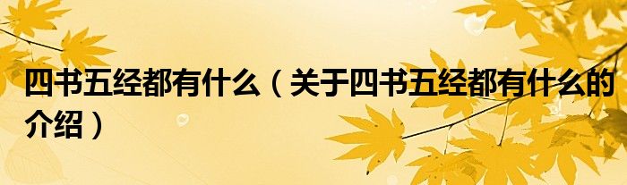1、四書五經(jīng),是指“四書”與“五經(jīng)”的合稱,是歷代儒客學子研學的核心書經(jīng),在中國的傳統(tǒng)文化的諸多文學作品當中,四書五經(jīng)占據(jù)著相當重要的位置。