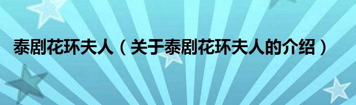 大家好,小新來為大家解答以上的問題。泰劇花環(huán)夫人,關(guān)于泰劇花環(huán)夫人的介紹很多人還不知道,現(xiàn)在讓我們一起來看看吧!