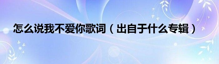大家好,伊人來(lái)為大家解答以上問(wèn)題。怎么說(shuō)我不愛(ài)你歌詞,出自于什么專輯很多人還不知道,現(xiàn)在讓我們一起來(lái)看看吧!