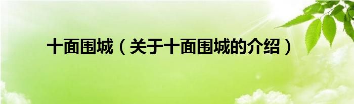 大家好,小新來(lái)為大家解答以上的問(wèn)題。十面圍城,關(guān)于十面圍城的介紹很多人還不知道,現(xiàn)在讓我們一起來(lái)看看吧!
