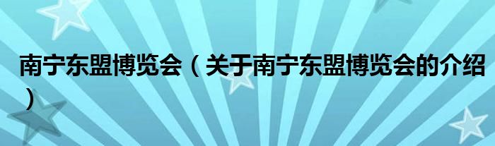 大家好,小新來為大家解答以上的問題。南寧東盟博覽會,關(guān)于南寧東盟博覽會的介紹很多人還不知道,現(xiàn)在讓我們一起來看看吧!