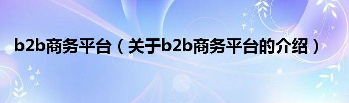 大家好,小新來(lái)為大家解答以上的問(wèn)題。b2b商務(wù)平臺(tái),關(guān)于b2b商務(wù)平臺(tái)的介紹很多人還不知道,現(xiàn)在讓我們一起來(lái)看看吧!