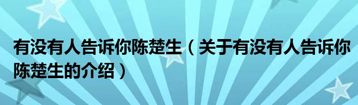 大家好,小新來為大家解答以上的問題。有沒有人告訴你陳楚生,關(guān)于有沒有人告訴你陳楚生的介紹很多人還不知道,現(xiàn)在讓我們一起來看看吧!