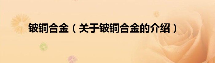 大家好,小新來為大家解答以上的問題。鈹銅合金,關于鈹銅合金的介紹很多人還不知道,現在讓我們一起來看看吧!