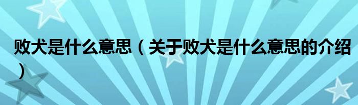 大家好,小新來為大家解答以上的問題。敗犬是什么意思,關(guān)于敗犬是什么意思的介紹很多人還不知道,現(xiàn)在讓我們一起來看看吧!