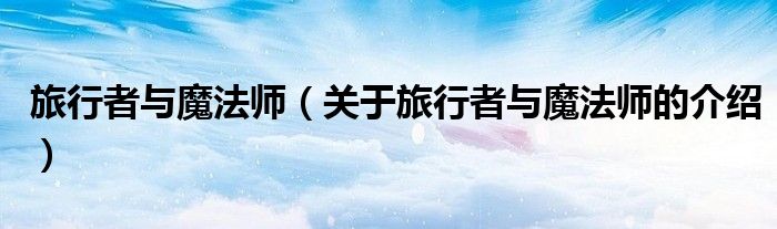 大家好,小新來為大家解答以上的問題。旅行者與魔法師,關(guān)于旅行者與魔法師的介紹很多人還不知道,現(xiàn)在讓我們一起來看看吧!