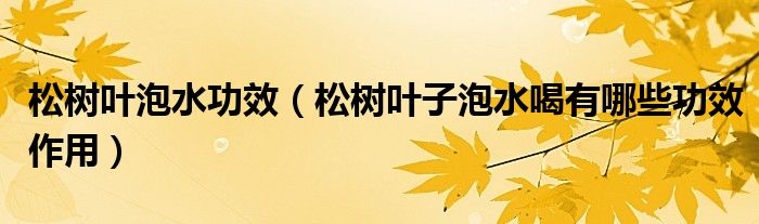 大家好,伊人來(lái)為大家解答以上問(wèn)題。松樹葉泡水功效,松樹葉子泡水喝有哪些功效作用很多人還不知道,現(xiàn)在讓我們一起來(lái)看看吧!