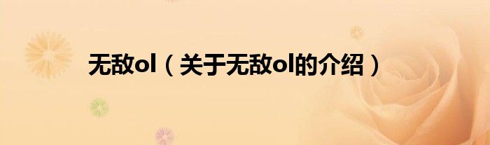 大家好,小新來為大家解答以上的問題。無敵ol,關于無敵ol的介紹很多人還不知道,現(xiàn)在讓我們一起來看看吧!
