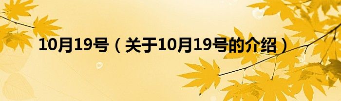 大家好,小新來為大家解答以上的問題。10月19號(hào),關(guān)于10月19號(hào)的介紹很多人還不知道,現(xiàn)在讓我們一起來看看吧!