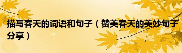 大家好,伊人來為大家解答以上問題。描寫春天的詞語和句子,贊美春天的美妙句子分享很多人還不知道,現(xiàn)在讓我們一起來看看吧!